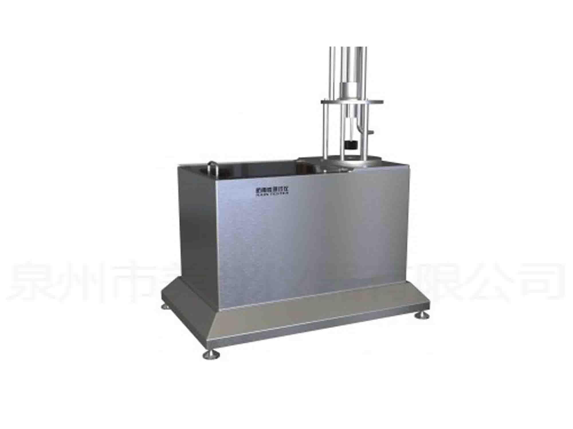 淋雨性測(cè)試儀,可檢測(cè)在不同雨水壓力作用下織物或復(fù)合材料的拒水性能。本儀器可模擬雨從水平方向噴向垂直固定在不銹鋼槽內(nèi)的待測(cè)織物。試樣背面緊貼著標(biāo)準(zhǔn)吸濾紙(測(cè)試前后需稱(chēng)重)。水柱中的水經(jīng)標(biāo)準(zhǔn)噴頭噴射形成雨,而水柱水量可由600mm增加至2400mm。