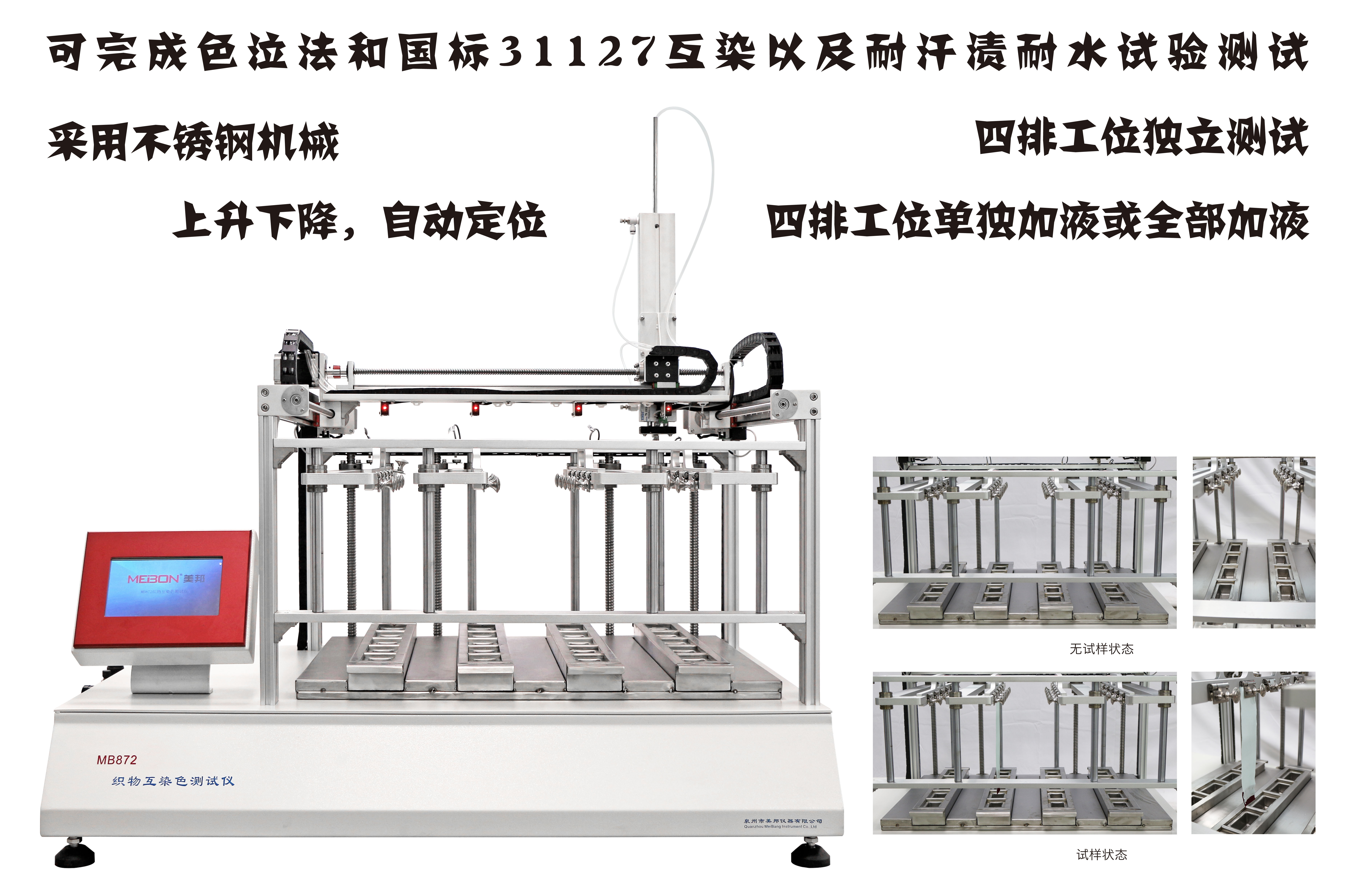 7、可完成色泣法和國(guó)標(biāo)31127互染以及耐汗?jié)n耐水試驗(yàn)測(cè)試。