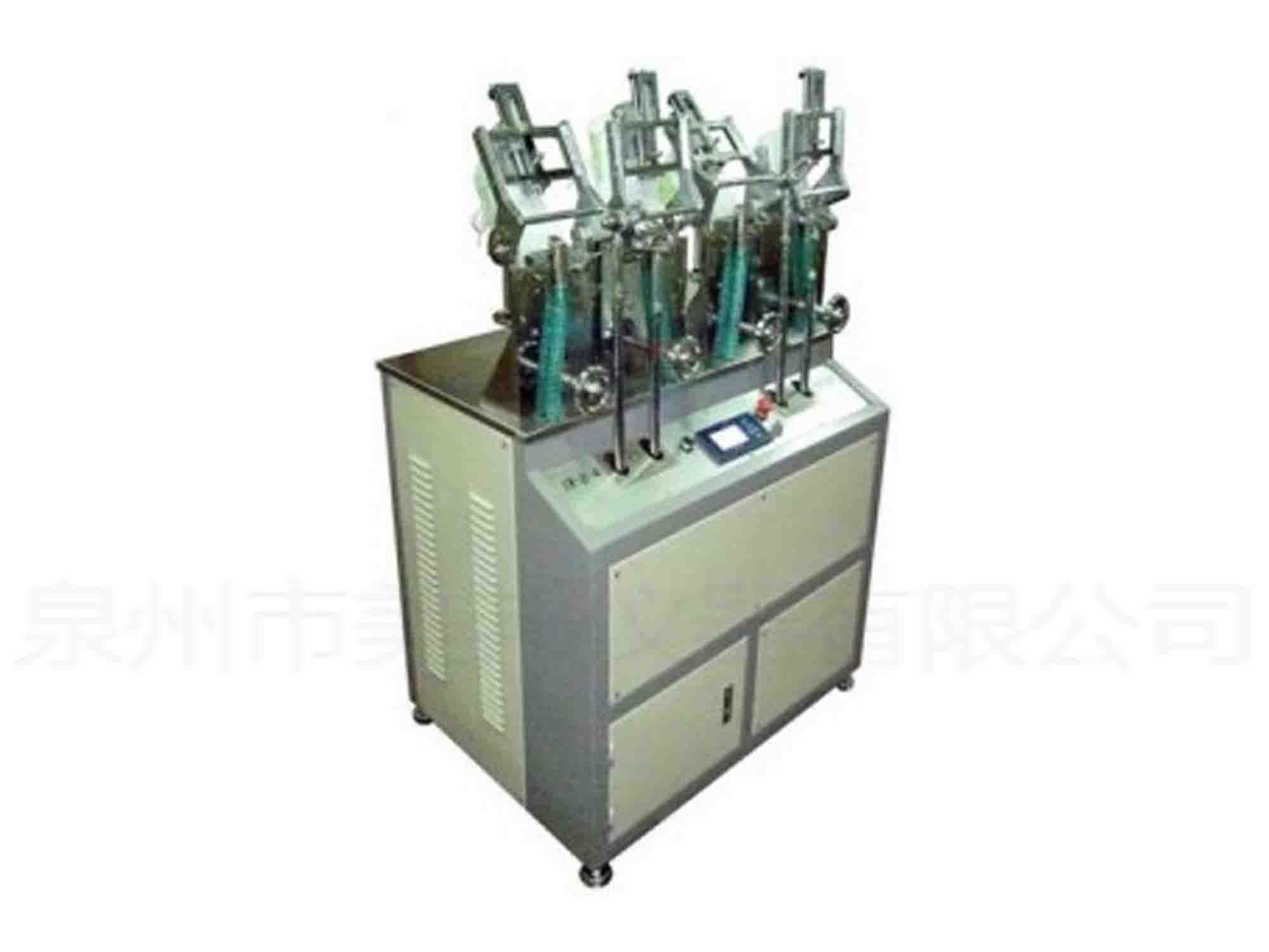 This machine is used to test the folding resistance of shoes and sole (sheet) at normal temperature. At a certain angle and a certain frequency, a certain number of flexing tests are carried out at a certain angle and a certain frequency, and the change of the shoe is observed, and 4 shoes can be measured at the same time.